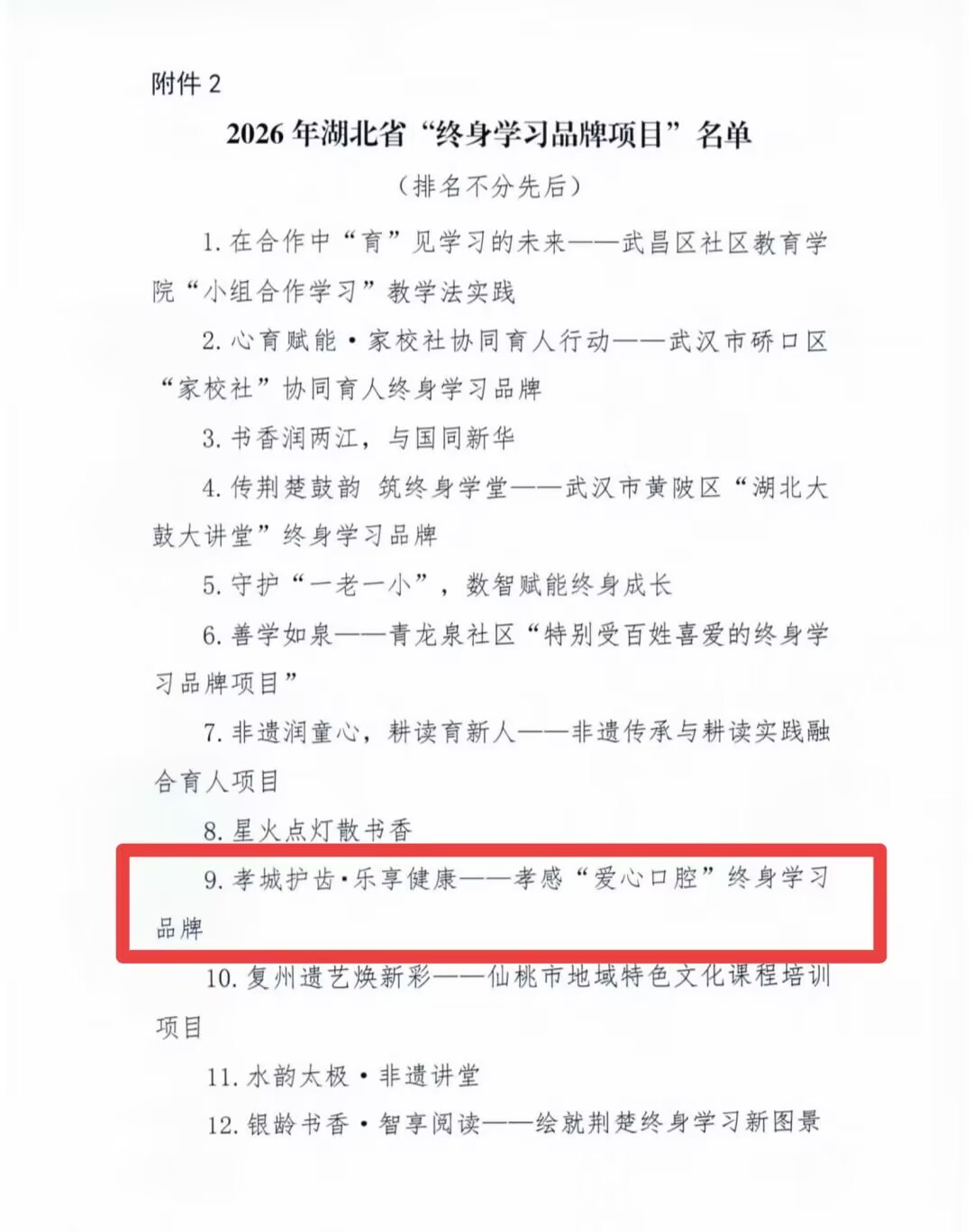 (本网讯 张玮 柯豆豆 甄江波)近日,湖北省2026年终身学习品牌项目评选结果揭晓,beat365官网“孝城护齿・乐享健康——孝感‘爱心口腔’终身学习品牌”成功入选。