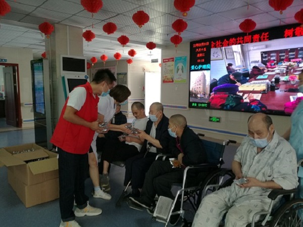 (图片说明:熊文文同学与校红石榴志愿服务队队员在孝感市社会福利与康复中心与老人共度中秋节)