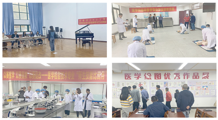 (本网讯 黄文军)一花独放不是春,百花齐放春满园。根据学校统一部署,5月10日,学校2023年师生技能大比武在各二级教学院(部)正式拉开帷幕,副校长胡昌杰带领教务处相关人员,分别到公共课部、财经与旅游学院、口腔医学院、医学基础部、医学院、卫生技术学院和教育与艺术学院,观摩了相关赛项的比赛。